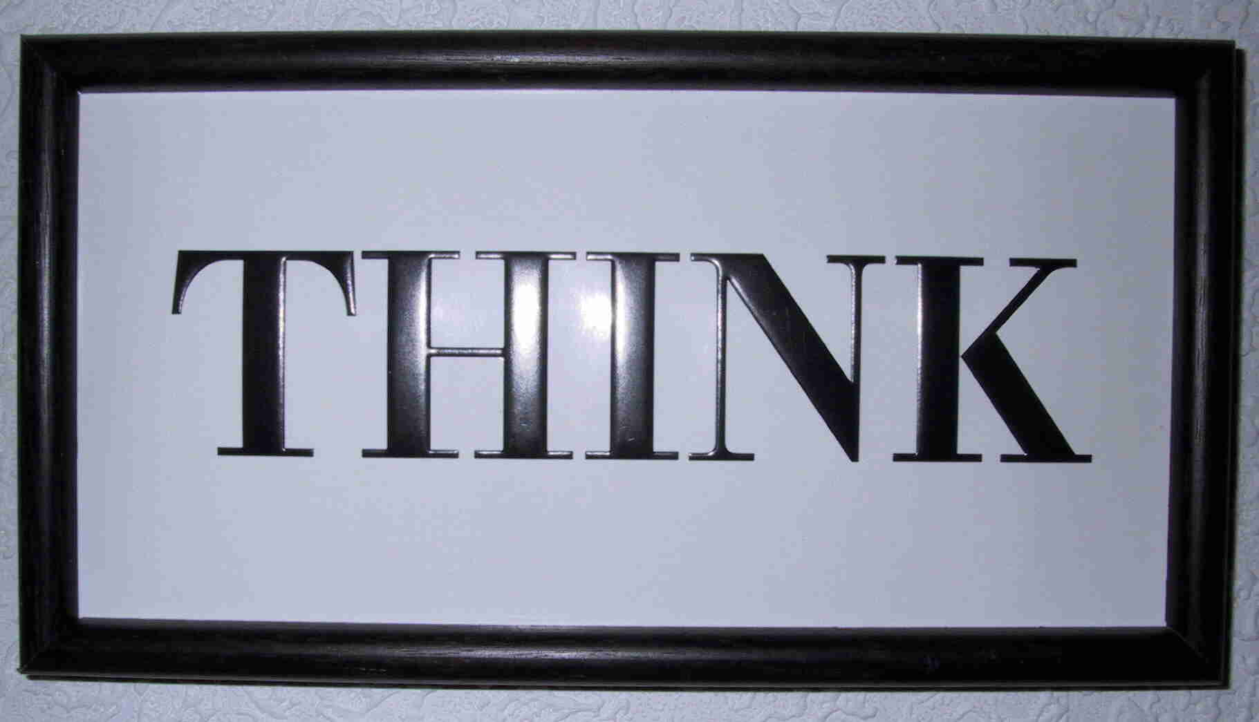 Das gezeigte "Think" Schild war über lange Zeit das Motto der IBM und hing über fast jedem Schreibtisch als ständige Mahnung.