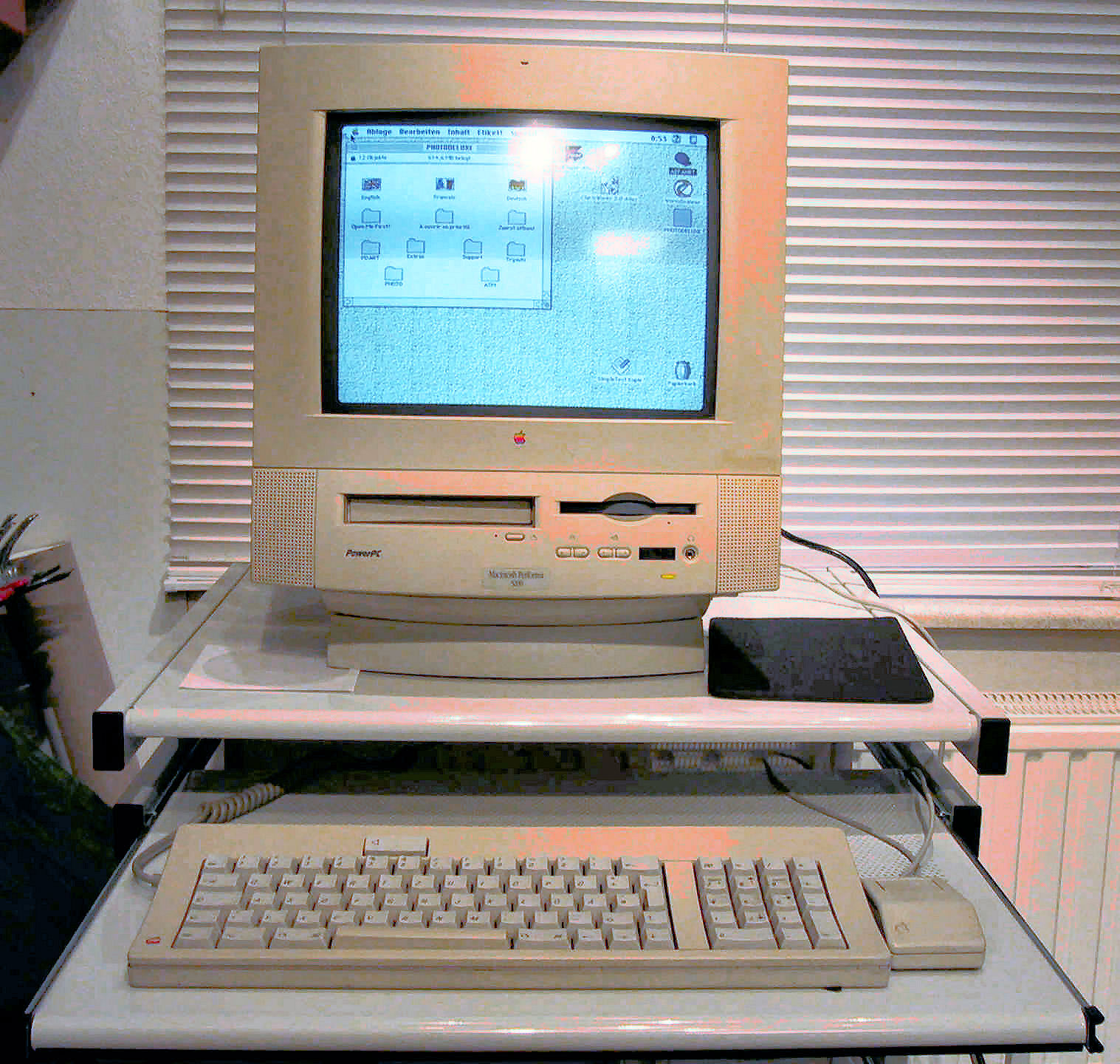 Typenbezeichnung 5200, Prozessor IBM Power-PC 603, 75 MHz 8-64 MB Hauptspeicher in max 2x 32 MB PS2 SIMMs 1x 1,44 MB Diskettenlaufwerk, 800 MB Festplatte, CD Laufwerk 832x624 Video, 8bit Farbe 15 Zoll Monitor mit zwei Lautsprechern Baujahr: 1995
