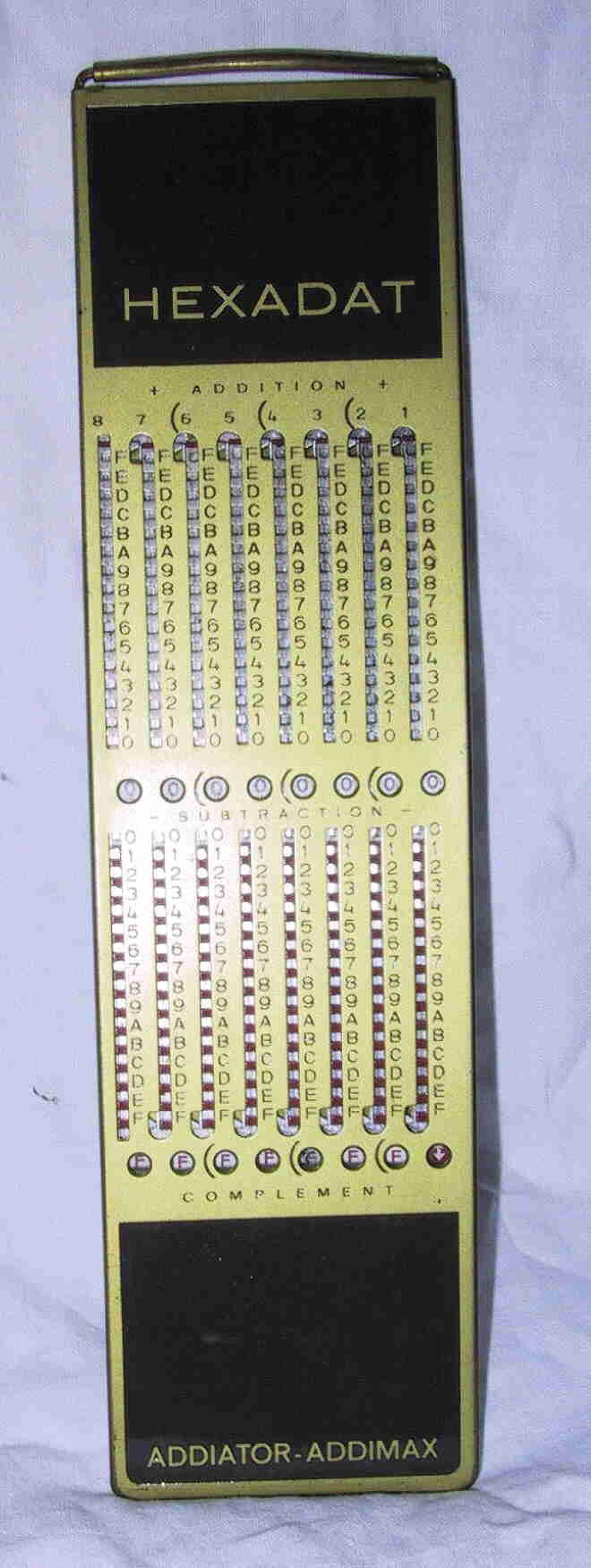 Der Addiator Hexadat ist eine Rechenhilfe für Programmierer, um in Hexadezimal Adressrechnungen durchzuführen. Über lange Zeit war es der einzige Rechner, mit dem in Hexadezimal gerechnet werden konnte, ein stark verbesserter Hexrechner war erst der TI Programmer, der aber viel später auf den Markt kam. Der Addiator konnte addieren und subtrahieren. Multiplikation und Division konnten allerdings durch mehrmalige Addition oder Subtraktion hergestellt werden.