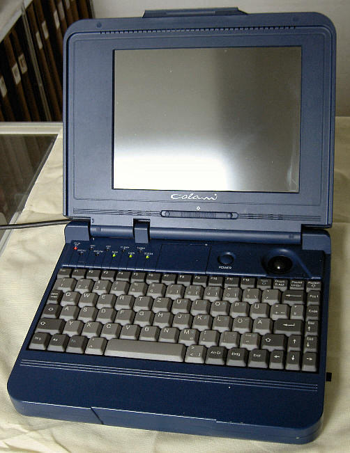 Typenbezeichnung Colani Blue Note II, Prozessor Intel 80486DX2, 66 MHz 8 MB Hauptspeicher, erweiterbar auf 8 MB 1x 1,44 MB Diskettenlaufwerk, 450 MB Festplatte 10,3” DSTN Color Bildschirm Festplatte 40 MB 2,9 Kg Datum 1995