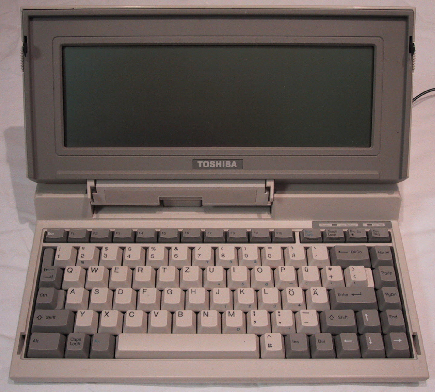 Der Toshiba T1000 war der erste richtige Laptop überhaupt und seinerzeit ein Spitzengerät. Als Operating System fand das fest eingebrannte Toshiba MS-DOS 2.11 in 256K ROM Verwendung.