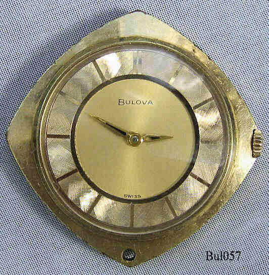 A Bulova Handwinding watch to be carried on a neck chain, signed front: “Bulova, Swiss”, inside: ”Bulova Watch Co., 11ALL, 17 seventeen Jewels, Unadjusted Swiss, M6”, Caliber 11ALL, Date of production 1966 (M66), base metal back.