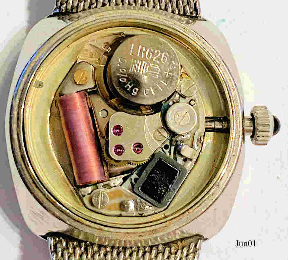 Eine Junghans Damen Schmuck Armbanduhr in Edelstahl. Inschrift vorn: “Junghans, Quartz”, hinten: ”JUNGHANS, Made in Germany, Stainless Steel , Shock Resistant/ DIN, 15-3871”, innen: “Five 5 Jewels, 632.51, Germany, Unadjusted”. Sehr geschmackvolles geschliffenes Milanaisearmband mit matt silberner Oberfläche. Siehe auch die passende Herrenuhr.
