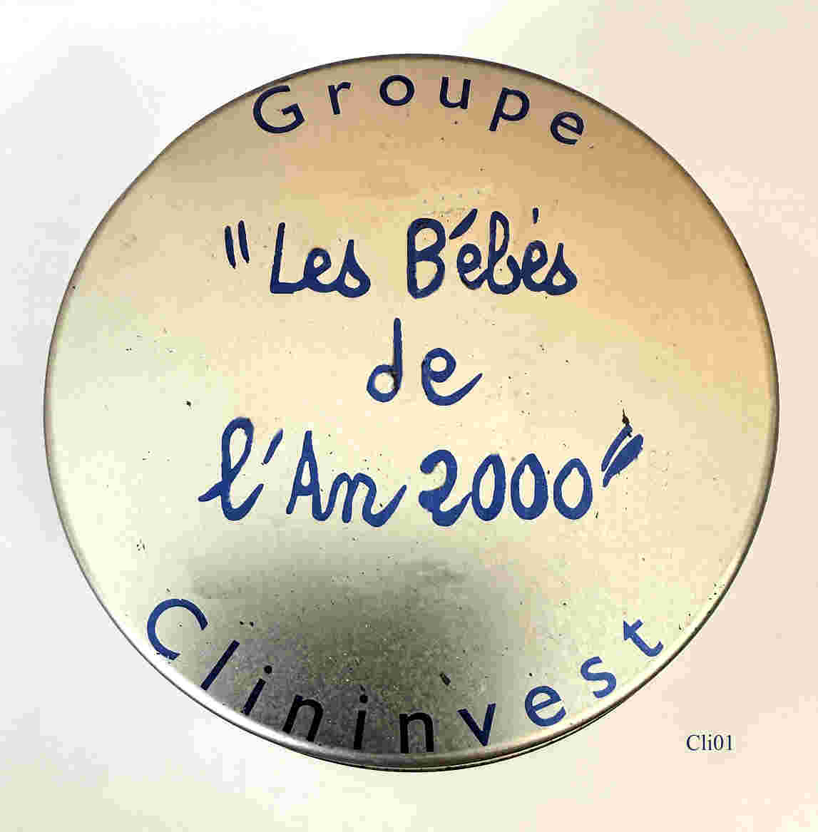 Eine Schreibtischuhr von der Firma Groupe Clininvest zur Begrüßung der Kinder des Jahres 2000. Design: Albert Dupont Ende 1999. Limitierte Serie von 131 Stück, plus 20 für den Designer. Beschriftet vorn: Kinder Fußabdrücke, hinten: “Groupe, Clininvest, “Les Bébes de L’An 2000”, Serie Limité, Logo Albert Dupont, @A&T Editeur”. Uhrwerk SIIO PC21A