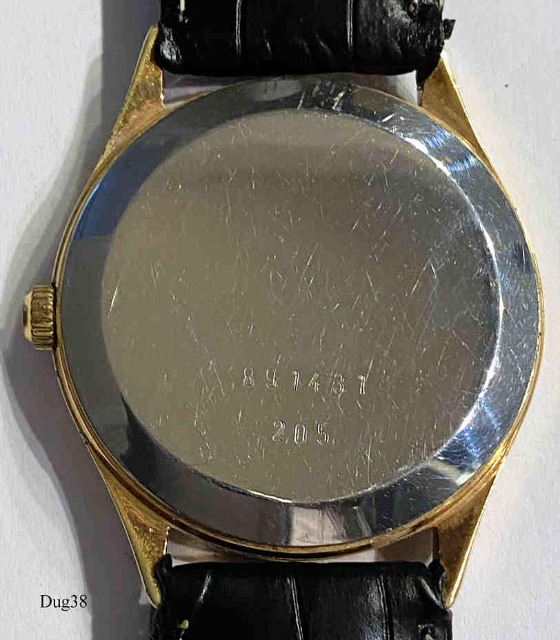 Eine Dugena Herren Quartzuhr mit vergoldetem Gehäuse und Stainless Steel Back. Kaliber ETA 944.111. Beschriftung vorn: “Dugena, Quartz”, Hinten: ”891431, 205”, innen: ”944.111, seven 7 Jewels, Unadjusted”.