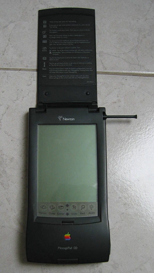 Der Apple Newton Message Pad 120 ist der Nachfolger des H1000, der erste PDA. Man könnte sagen, Apple hat den Personal Digital Assistant erfunden. Außerdem hat Apple heute noch die wohl beste Handschrifterkennung, die in diesen Newton PDAs eingeführt wurde. Technische Daten: Betriebssystem: Newton OS 1.1 Hauptspeicher:1 MB Prozessor:ARM 610, 20 MHz Anzeige: 240x336 LCD monochrom Baujahr:1993 -