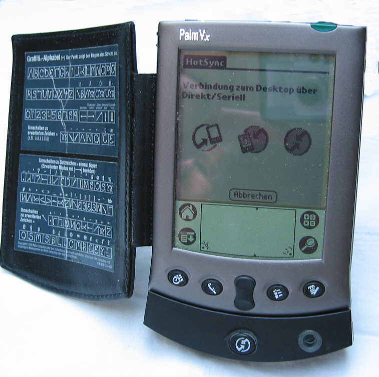 Der Palm Vx ist der Nachfolger des legendären Palm Pilot. Er zeichnet sich durch viel Speicher und einen eingebauten Accu aus, kein Batteriewechsel mehr!. Schrifterkennung und Synchronisierung mit dem PC funktionieren wie gewohnt Technische Daten: Betriebssystem: Palm OS 3.5 Hauptspeicher: 8 MB Prozessor:Motorola Dragonball EZ, 20 MHz Anzeige: 160 x 160 LCD monochrom