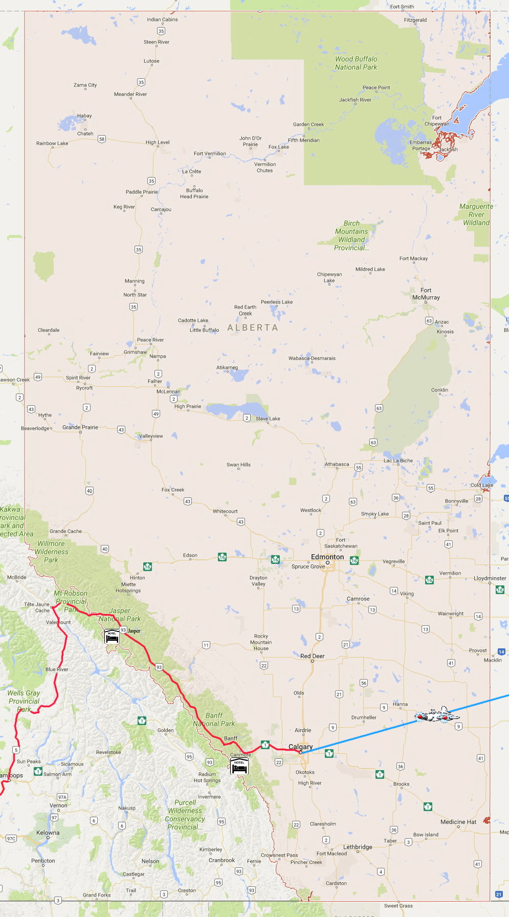 02.09. - 17.09.2013 West Kanada Rundreise und Kreuzfahrt nach Alaska. Flug von Hamburg nach Calgary, dann Busfahrt nach Canmore. Weiter über Lake Louise und Lake Moraine nach Banff,  dann zurück nach Canmore.  Dann zum Athabaska Gletscher und das Columbia Icefield, dann nach Jasper. Weiter über Mount Robson zum Elenor Lake, dort den Rocky Mounteneer Zug vorbeifahren sehen. Übernachtung in Kamloops und weiter nach Whistler. Von dort nach Vancouver mit Stadtbesichtigung. Weiter nach Seattle zum Einschiffen auf der Norwegian Pearl und Start der Alaska Kreuzfahrt