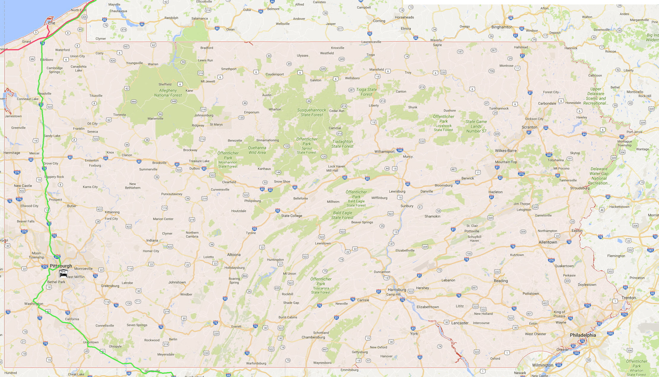 08.04. - 09.04.1990 ------ Fahrt von Niagara Falls nach Pittsburg, dort Übernachten und weiter nach Colonial Williamsburg31.08.1998 ----- Fahrt von Niagara Falls über Erie nach Cleveland