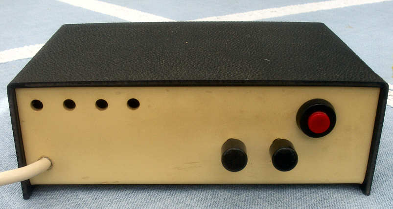 Schaltungen der SN 74xx Serie. Die Uhr wird über die beiden Potentiometer auf der Rückseite gestellt, um Schaltknackse zu vermeiden. Der Druckschalter auf der Rückseite dient zur Nullstellung der Uhr.