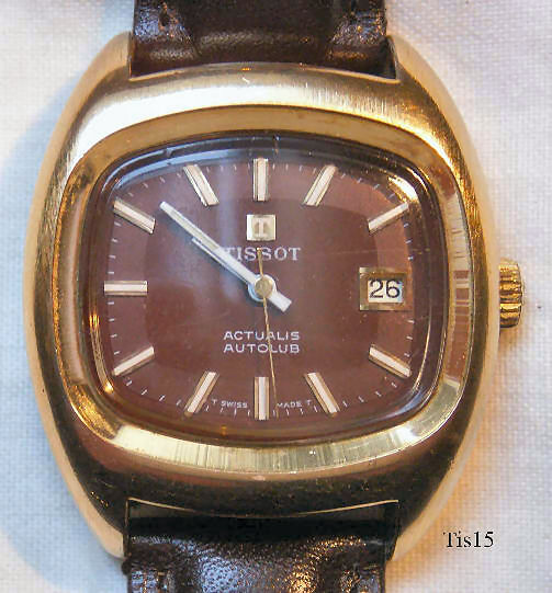 Eine Tissot Actualis Autolub Handaufzugsuhr. Werk Caliber 512, Gehäuse Base Metal, vergoldet, Edelstahl Schraubboden. Beschriftet vorn:”Tissot, Actualis, Autolub, Swiss Made”, innen:” T512,”,