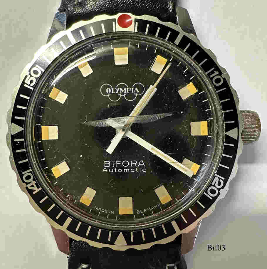 The first german watch movement After years of pioneer work Josef Bidlingmaier could in 1928 introduce the Caliber B2025 as the first self developed and manufactured watch movement. It is the first form movement specially for watches built in Germany. Also it is the first watch movement with anchor lever of german production. On the ¾ bridge of the movement was the signature ”BIFORA” (BI= Bidlingmaier, FOR= Formwerk, A= Ankerhemmung) and ”D.R.G.M.“ (Deutsches Reichs-Gebrauchsmuster). In 1934 the trade mark ”Bifora” was registered and the company renamed in ”Bifora-Uhren J. Bidlingmaier Gesellschaft mit beschränkter Haftung”. The company J. Bidlingmaier developed to one of the leading German watch manufacturers and the watches had an excellent image. Bimag - the first german automatic movement 1951 the caliber 103 SA was introduced as the first German automatic movement. 1962 Bifora introduced the first German ladies automatic caliber, caliber 70 with 7 ¼ lines, to the market. In the same year also a new Bifora-Automatic mens watch was introduced. The caliber 910 was based on an inexpensive pole construction. Chronometer Bifora ”Unima” 1955 the caliber 120 in the form ”Unima” was presented as a very successful handwind-chronometer movement. The Bifora ”Unima”-Chronometer were besides the Chronometers of Junghans and Laco the top products of German watch production. Quarzwatches Already in 1967 working prototypes of the electromechanical movements B8 and B9 were shown, but only in 1971 the calibers B10/B11 were functional electromechanical products in serial production. Bifora then could show an own quartz movement in 1973 with the caliber B12. A lot of parts of the B10/B11 (i.e. plates and bridges) could be reused. With the ”flat-line” and the calibers B17/B18 Bifora could then in 1977 show the worldwide slimmest quartzwatch with a hight of 3,0-3,2 mm, where the case and basetplate were produced from one piece. The end Josef Bidlingmaier died on 20. January 1967 and his two sons took over the management of the company. Regardless of massive personnel cut, in 1977 with in the end 270 workers they had to claim bankrupt. 1978 the former repräsentative of the company in middle east, the India high merchant Hiranand Gajria, took over Bifora. The produktion in Germany stopped finally in 1983and the factory was closed down. Also in India the watch production was finally closed down in the 1990s. The new aera In 2011 a small team started again by founding the ”Bifora Uhren-Manufaktur GmbH”. They want to produce high quality mechanical watches in the old tradition but following the modern demand. And so they could show in november 2014 the JB-60, the first Bifora-watch since 30 years. The name reminds at the founder Josef Bidlingmaier and the edition of 60 pieces. 60 original caliber 130 from 1965 were used. They have been generally fixed and exceptionally refurbished and polished. All parts of the watch, as of their pretention, are produced in Germany and Switzerland. The case for example is produced in Pforzheim, the band in Augsburg. The dial and hands are made in Switzerland. The business model did not succeed and was closed in a friendly way. The brand name stayed with the former owner. the 60 watches were sold with the assistance of the Bifora Freundeskteis e.V. Until today exists a sale office of the indian owners of Bifora in the former manufactoring site and offers modern Bifora watches of the indian manufacturing. Brand museum 2009 the association ”Bifora Freundeskreis e.V.” was founded. Since 2014 a museum managed by the Bifora Freundeskreises e.V. was founded in a side wing of the former manufacturing site and documents the companys history by i.e. all ever built movements and many other artefacts. To maintain and keep the museum alive every now and then small series of watches from still existing new old stock movements are created for specific Schwäbisch Gmünd city events. They are remainders of the production of 1980 and are combined with new cases and dials designed and manufactured by the Bifora Freundeskreis e.V..