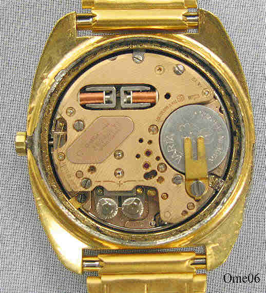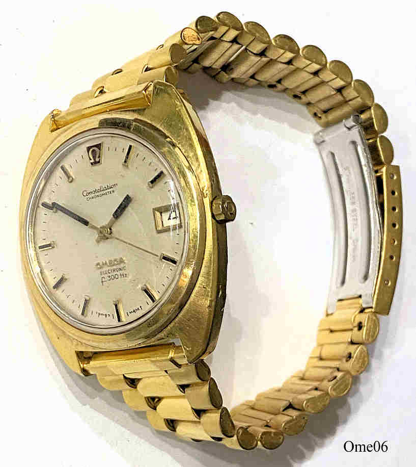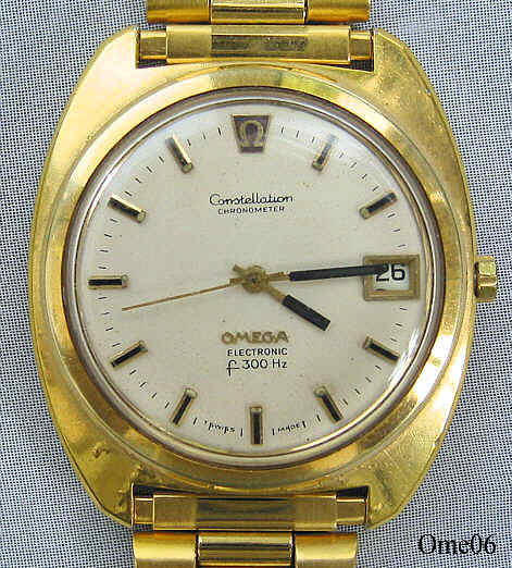 Dies ist eine Omega Constellation, Caliber 1250, ESA 9162, Referenz Nr.: CD 198.002, 14K goldcap on stainless steel case. Werk Nr.: 36944533, Beschriftet vorn: “Constellation, Chronometer, Omega, Electronic, f300Hz”, innen: “Omega 1250, 36944533, Unadjusted”