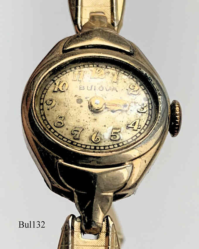 A Bulova Handwinding watch, model “Diamond Excellency”, with gold plated decorated case, signed front: “Bulova”, back: “Bulova, 10K Rolled Gold Plate, 0435042”, inside: “Bulova Watch Co, 6AH, seventeen 17 Jewels, unadjusted, Swiss”, Caliber 6AH, production date appr. 1940, gold filled back, gold plated band with security clasp.