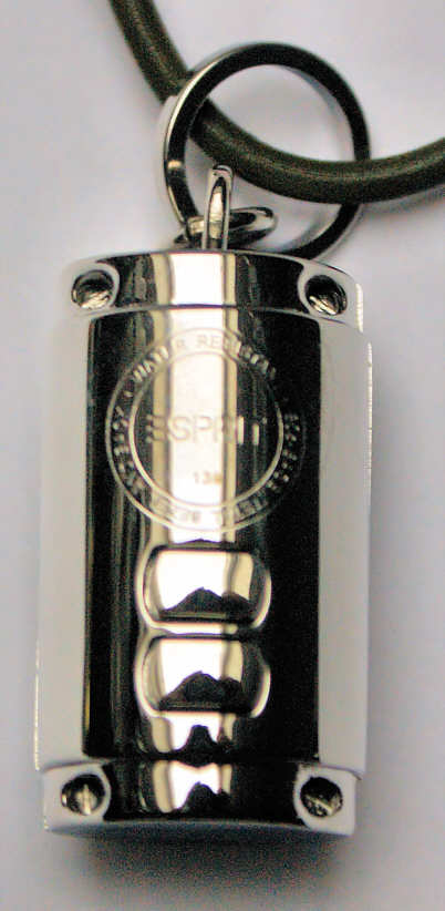 These are two Esprit Ladies Dresswatches, carried as a pendant on a leather necklace. Signed front: ”Esprit”, back: ”Esprit, 139, Water Resistant, 805-Base Metal Bezel and Back”.