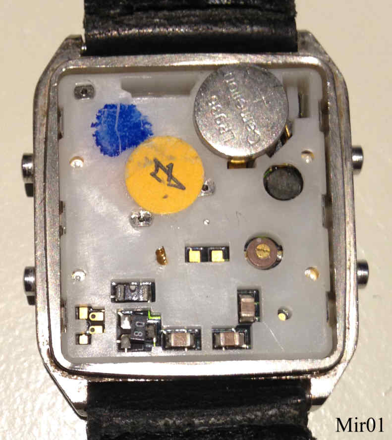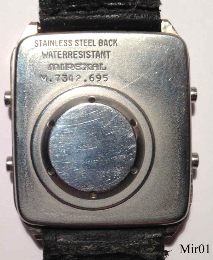 Ein moderner Ana-Digi Chronograph von Mirexal. Hier ist der Digitalteil in der unteren Hälfte des Zifferblattes angelegt, der Analogteil ist oben rechts als Mini-Zifferblatt eingebaut. Base Metal Gehäuse mit schwarzem Lederarmband. Die Stromversorgung erfolgt aus einer zenralen Batterie. In der Rückwand ist ein Piezo Lautsprecher eingebaut. Bezeichnet vorn: “Mirexal, Quartz, hinten: “Stainless Steel Back, Waterresistant, Mirexal, M.7342.695”.