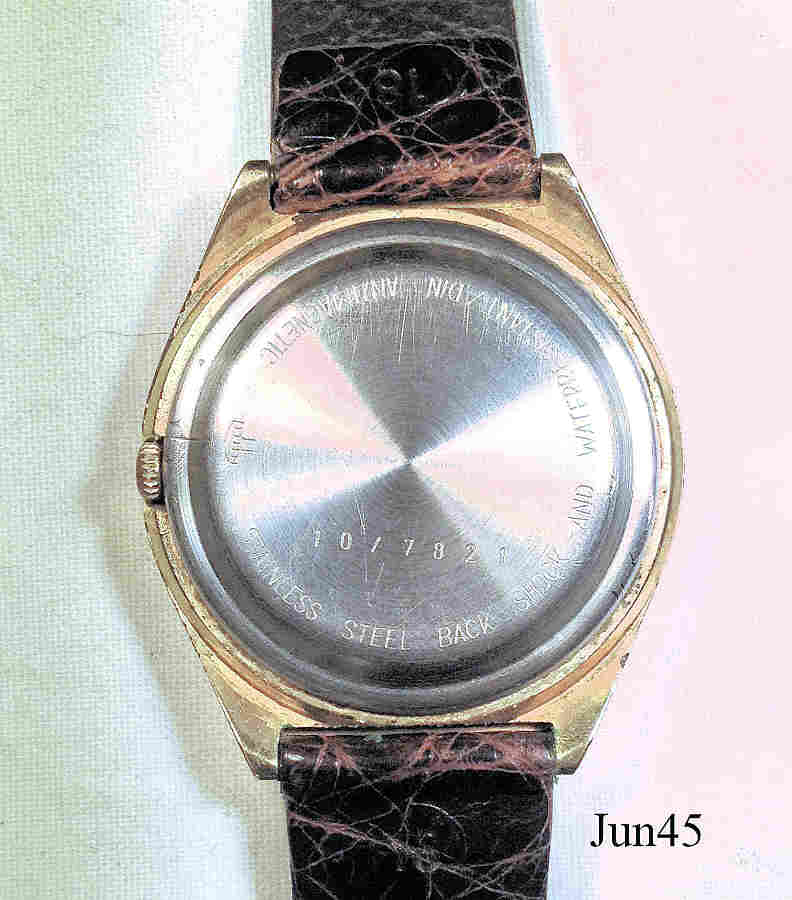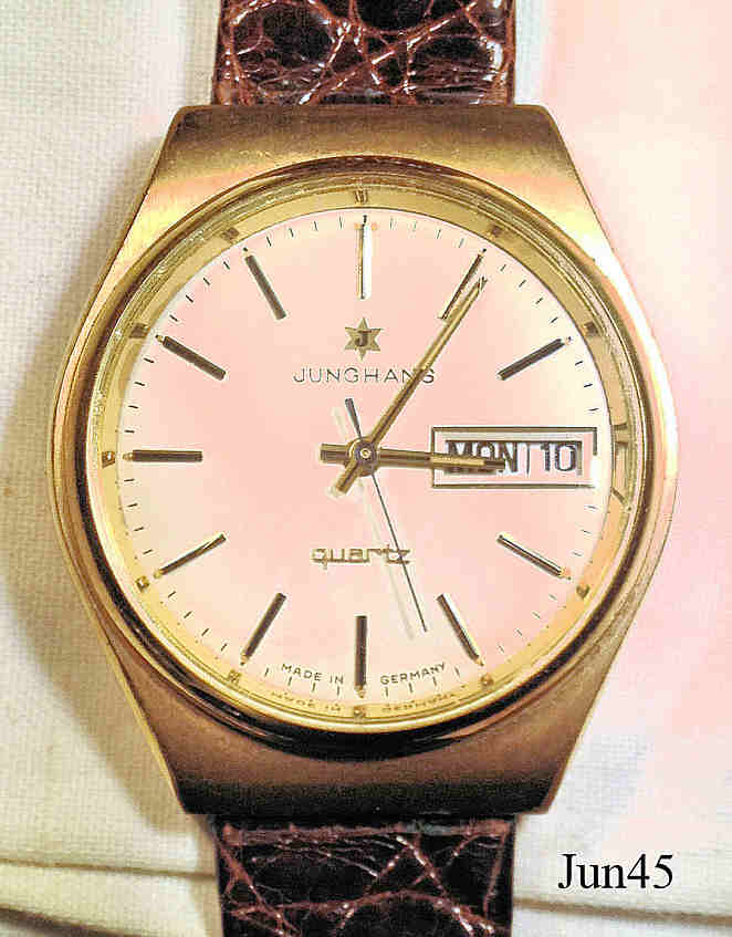 A Junghans Mens Quartz watch. Here the improved Caliber 667.30. Signed front: ”JUNGHANS, Quartz, Made in Germany”, back: ”Antrimagnetic, Stainless Steel back, Shock and Water Resistant / DIN, 10/7821”, inside: ”667.30, Made in Germany”.