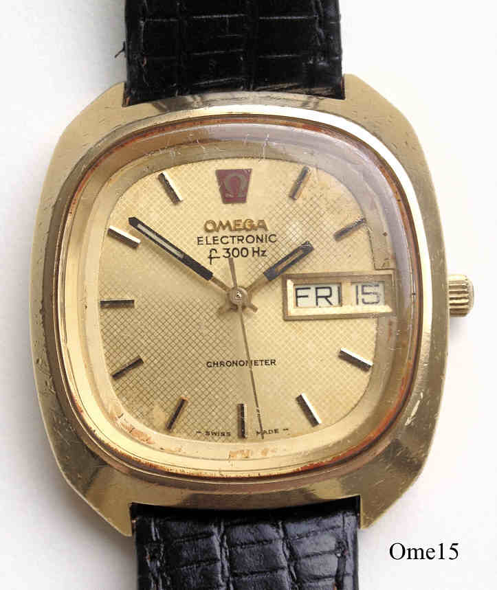 Eine Omega Seamaster Uhr, Werk Caliber 1260, ESA 9164. 12 Steine, Werknummer 36899531, Gehäuse Nr. 1980076, Messing Gehäuse, Beschriftet: ”Omega, Electronic f300Hz, Chronometer, Swiss Made”, innen: ”€¯Omega, 1260, unadjusted, twelve 12 Jewels, 36899531, Lic. Bulova+ETA Swiss”€¯. Datum und Kalender bei der 3.