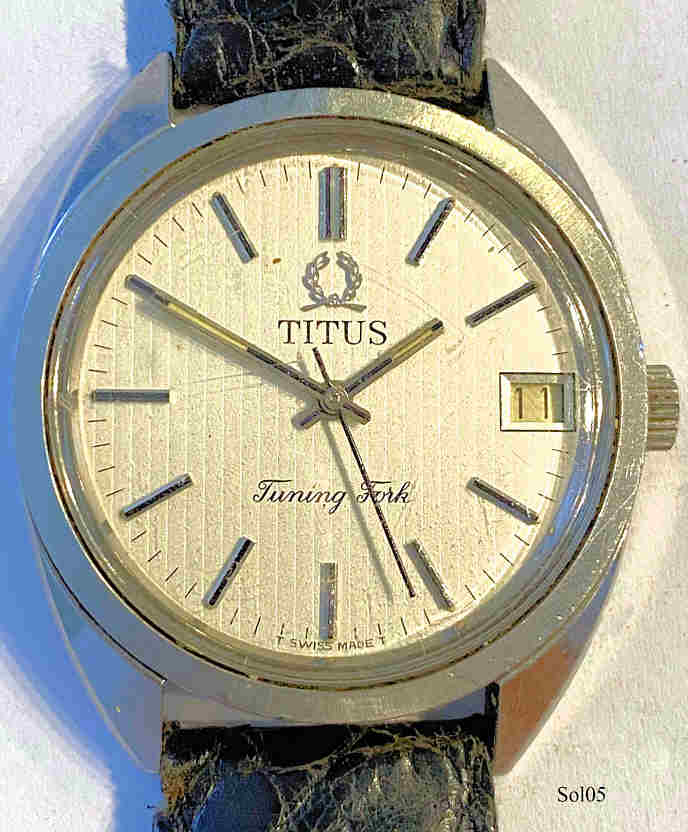 - Die Gläser dieser TITUS Stimmgabeluhren haben das kleine Omega Logo über der Zeigerachse, die obigen drei haben es
