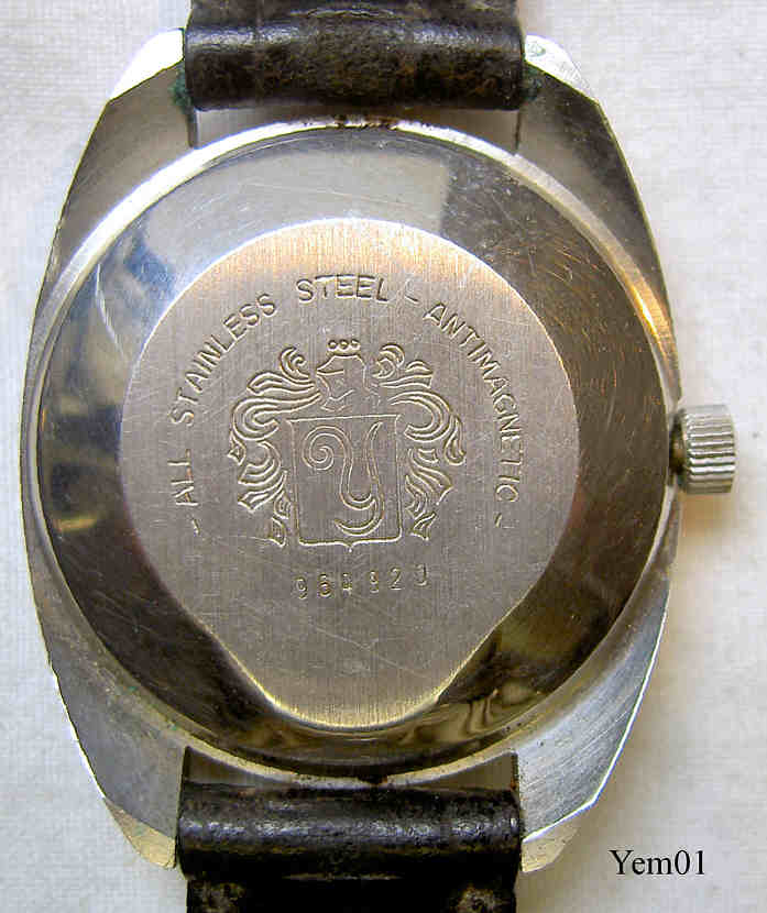 Diese Yema Transigraph arbeitet mit dem PUW 2502 Werk. Edelstahl Gehäuse mit schwarzem Lederband. Beschriftung vorn: ”Yema, Transigraph, Electronique”, hinten: ”All Stainless Steel, Antimagnetic, 364920”, innen: ”Seven 7 Jewels, 28800, Unadjusted, IC PUW 01J”