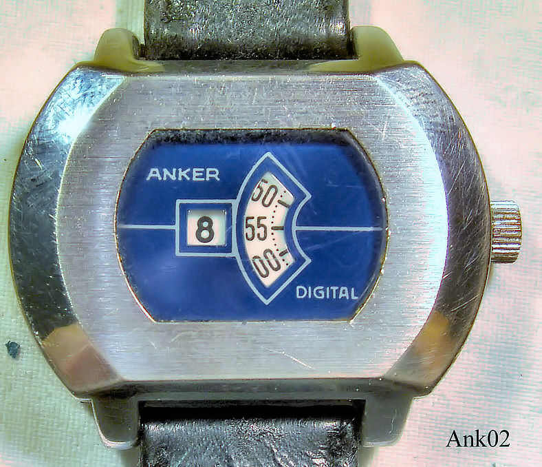 Die Anker Digital ist eine Handaufzugsuhr mit klarer Digitalanzeige. Uhrwerk Eppler 12. Sie hat eine Digitalanzeige mit zwei Zahlenscheiben, wobei die Stundenscheibe vom Uhrwerk getrennt gelagert ist. Sie hat springende Zahlen, sodaß immer eine klare Anzeige gewährleistet ist. Beschriftet vorn: ”Anker, Digital”, hinten: ” ”, innen: ” ”. Die Kappe auf der Rückseite verdeckt die Schraube zum Lösen der Krone.