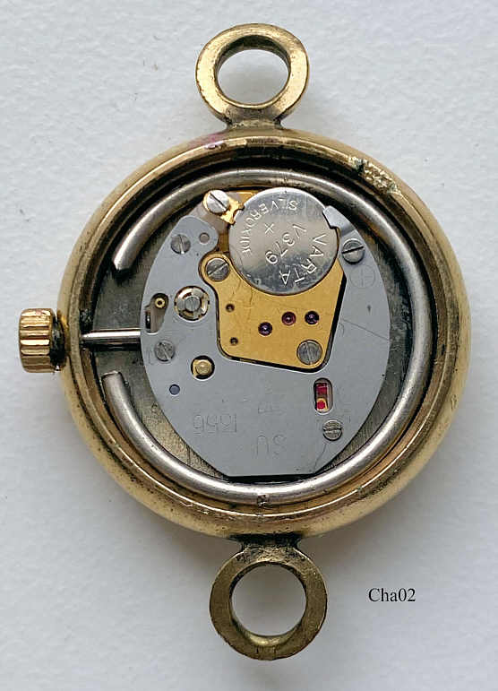 A Chaika ladies quartz watch with fixed metal armring. Base Metal case with stainless steel back. Signed back: “777695”.