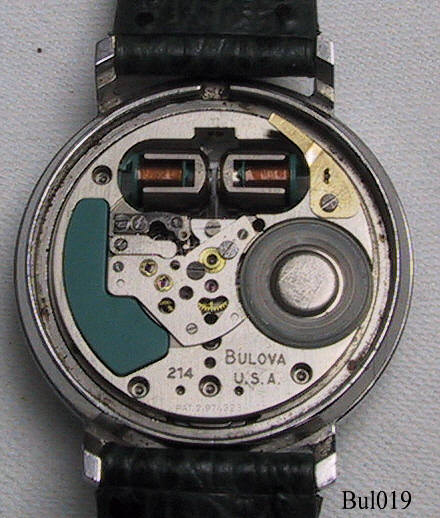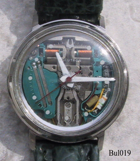 Eine umgebaute Bulova Spaceview mit Edelstahlgehäuse, Beschriftet hinten: “Waterproof, Patented, Stainless Steel, BULOVA, D30188, M5”, innen: “Bulova, 214, USA, Pat.:2.971.323, M5”, Caliber 2140, Herstelldatum 1965 (M5), verschraubter Boden, Einstellung über Stellring an der Rückseite. Die Zeiger waren Edelstahl, habe ich selbst weiß angestrichen, also nicht original. Grünes Lederarmband nicht original.