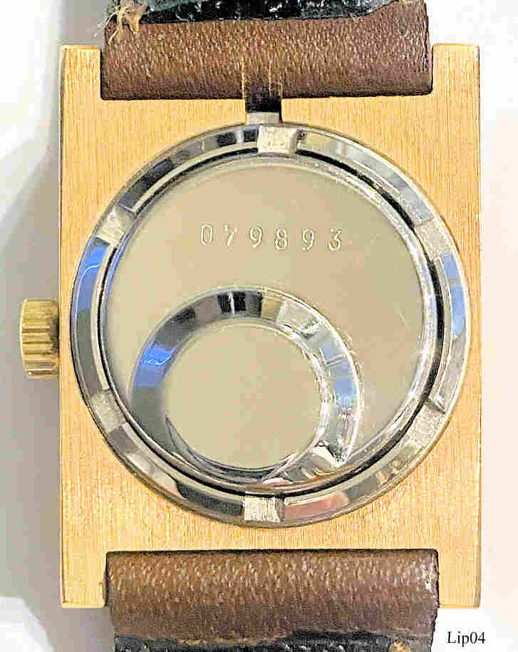 Eine LIP 16, eine der ersten elektrischen Armbanduhren. LIP hatte zwar 1952 als erster eine elektrische Armbanduhr angekündigt, wurde aber von Hamilton in der Markteinführung geschlagen und landete auf Platz zwei. Diese Uhr hat ein sehr schönes, vergoldetes Gehäuse und kann als Damen oder Herrenuhr getragen werden. Aufschrift vorn: “Lip, France”, hinten: “079893”, innen: ”14, Fourteen Jewels, Lip, Unadjusted, France, R50” Braunes, handgenähtes Lederarmband, Seriennummer 079893. Caliber Lip R50, ETA 9190.