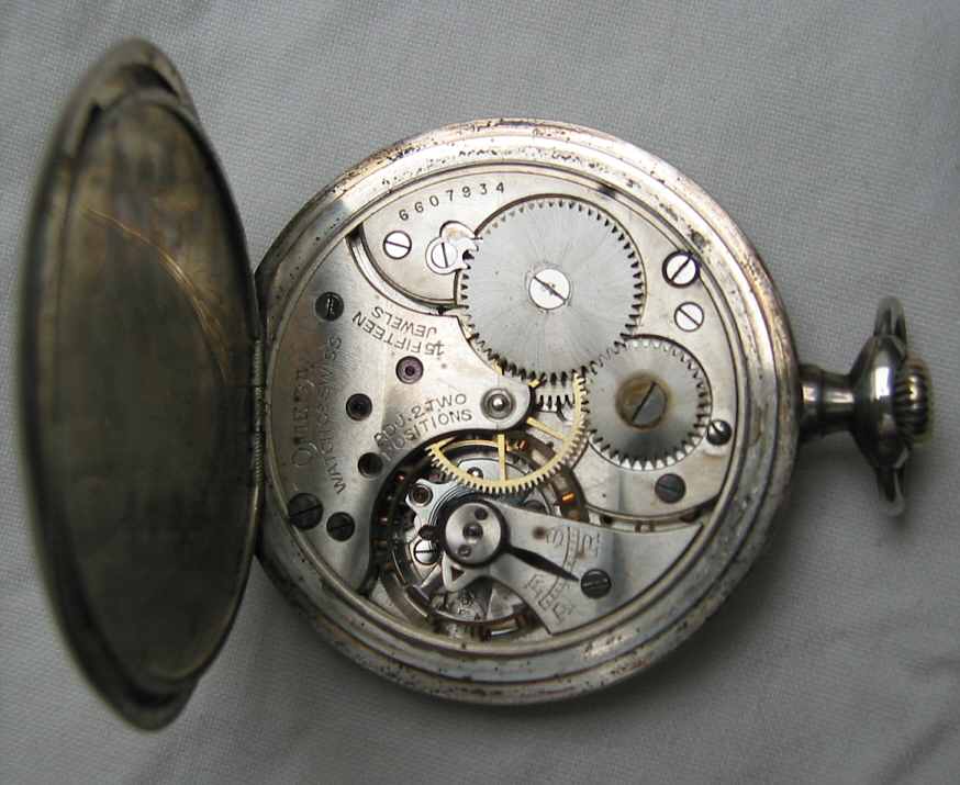 An Omega Pocketwatch with silver Case and two backs. signed external back: “ 0,800, 7349263” inside back:” Omega, Bienne, Geneve, 7349263, 0.800” Movement: