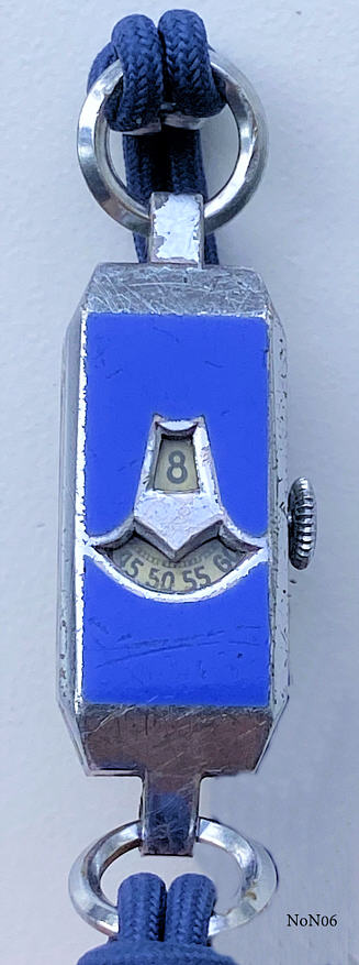 A digital ladies handwind watch without brand ID. silver coloured metal case with two display windows, upper hours, lower minutes. Signed front: “ ”, back: “67036”, inside: “TR”. Movement AS773
