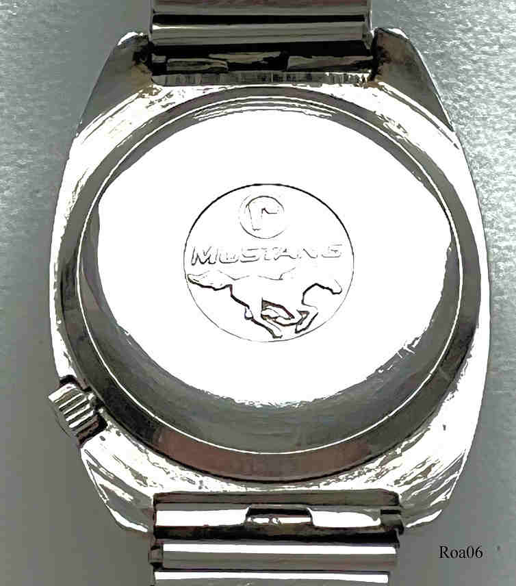 Eine Roamer Mustang Automatic Uhr, Datum bei der 3. Edelstahl Gehäuse mit FixoFlex S Armband. Beschriftet vorn:” Roamer, Mustang, Indianapolis, Swiss Made”, hinten:” Swiss Patents, 305.467, 305.776, 307.382, 308.491, Mustang, Waterproof, MOD. 471-1120.601, Stainless Steel”, innen: “Roamer, Automatic, 28 Jewels, Swiss Made”. Caliber Roamer 471.
