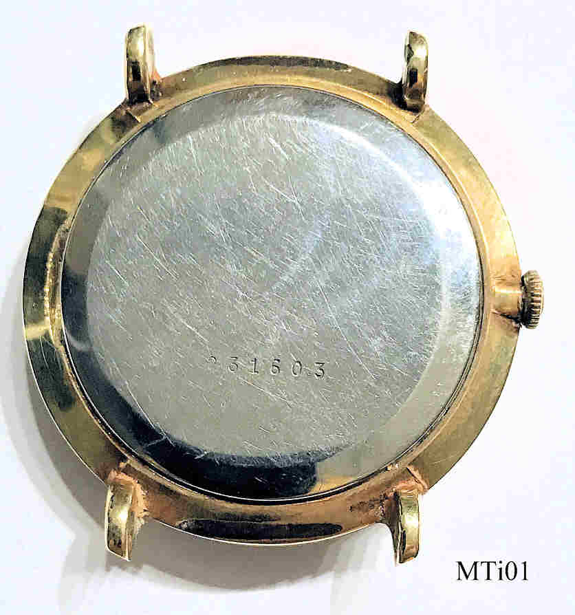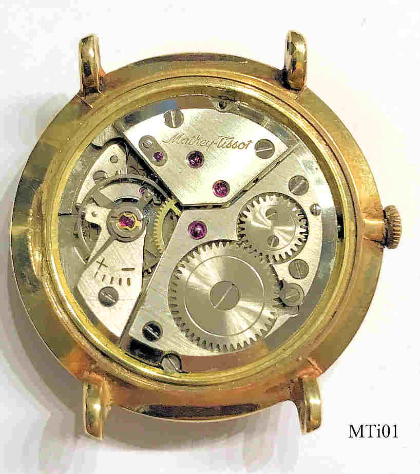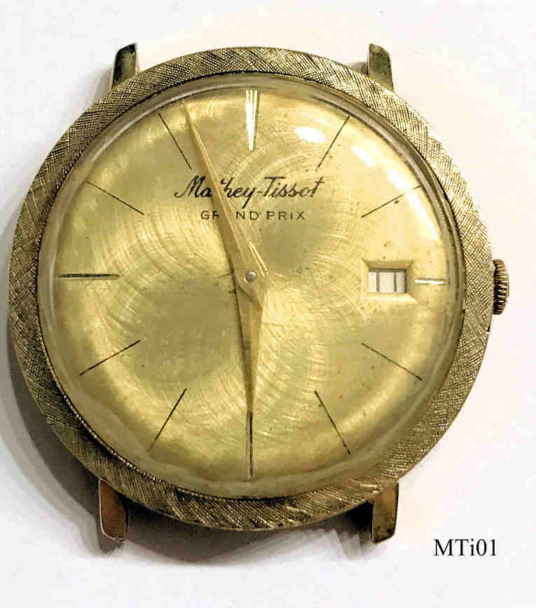 Eine Mathey-Tissot Uhr mit vergoldetem Base Metal Gehäuse und Stainless Steel Back, Datum bei der 3, Beschriftet vorn: “Mathey-Tissot, Grand Prix”, hinten: “231603”, innen: “Mathey-Tissot, P, 336N”