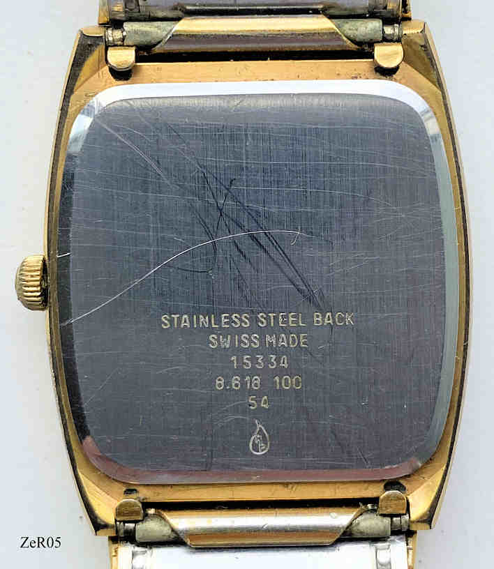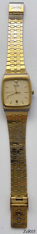 A ZentRaQuartz watch with an ESA quartz movement Caliber 955.411. Gold plated Case with goldtone metal band. Signed front: “ ZentRa, Quartz, ETA Swiss Quartz”, inside: “Unadjusted, seven 7 Jewels, ESA 955.411”, back: “Stainless Steel Back, Swiss Made, 15334, 8.618 100, 54“, Calendar at 6.