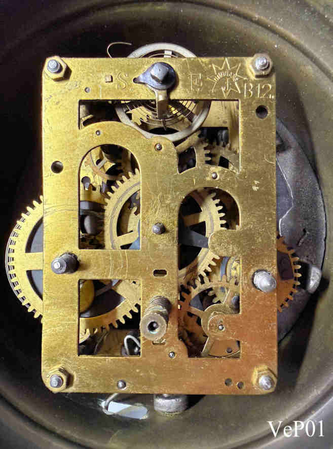 Ein klassischer Wecker aus dem Jahr 1930 von der Belgischen Firma Veuve F. Pasture in.Brüssel auf der Basis eines Junghans Weckers mit dem Werk Junghans B12 .Gehäuse aus Messingblech mit aufgesetzter Glocke. Beschriftet vorn: “Veuve F. Pasture, 64, Rue du Luxembourg, Bruxelles”, hinten: Funktions Beschreibungen in französisch, innen: ”Junghans, B12” |