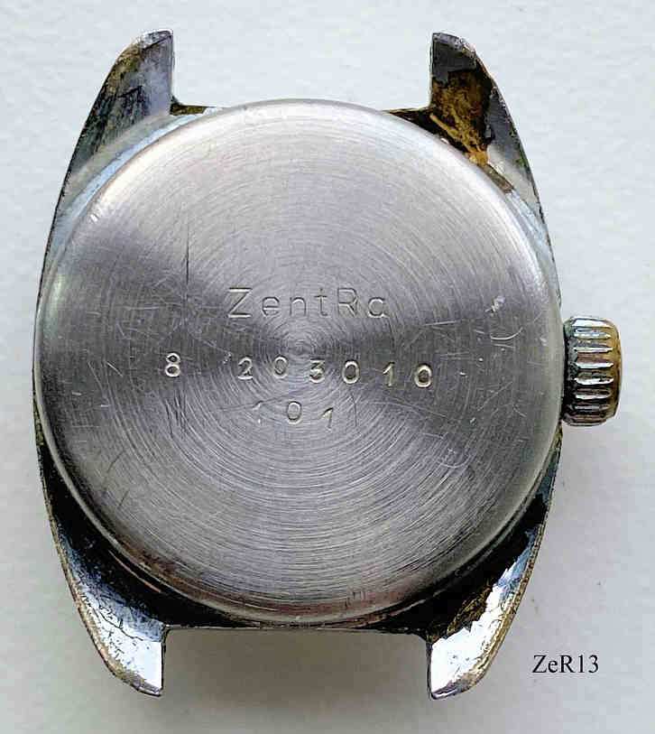 Eine schöne ZentRa Damen Quartz Uhr mit einem PUW 532 Werk. Edelstahl Gehäuse, Beschriftet vorn: ”ZentRa, Quartz, 2000”, hinten: ”ZentRa, 8 203010, 101”, innen: “PUW 572, 5 Jewels, Germany, Unadjusted”.