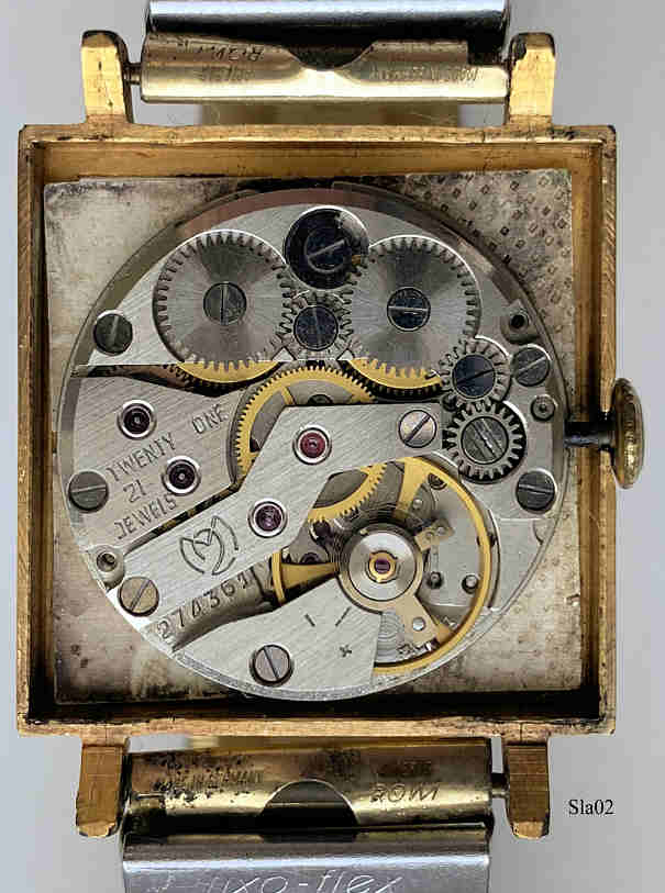 A russian Slava men’s watch with gold plated case and Stainless Steel back, brushed dial with roman numbers, 21 Jewel, nicely built, Calendar between 4 and 5, Flex band. Signed front: ”SLAVA, 21 Jewels, Made in USSR”, back: ”50 Years UDSSR” in russian, inside: “Twenty One, 21, Jewels, Logo, 274361”.This movement has two mainsprings and therefor a very long working time. Caliber Slava 2414