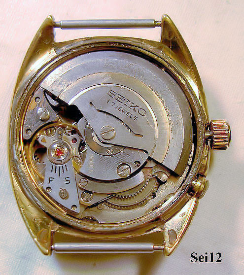 Dies ist eine Seiko Bellmatic Uhr mit vergoldetem Gehäuse und grauem Zifferblatt. Die Seiko Bellmatic wurde von 1966 bis 1978 gebaut. Es handelt sich hier um einen mechanischen Armbandwecker mit Automatic Werk. Beschriftung vorn:” Seiko, Bellmatic, 17 Jewels” hinten:”SGP Back St. Steel, 4006-6031, Water Resistant, Seiko, 680274, Japan A “, innen:”17 Jewels, 4006A”.