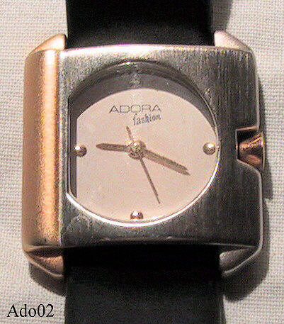 A very individual dualtone design watch from Adora. Signed front: ”ADORA fashion”, back:”Stainless Steel Back, W764”, inside: ”Unadjusted, Miyota Co., Japan”. Miyota Quartz Uhrwerk, Caliber Miyota 230-39.