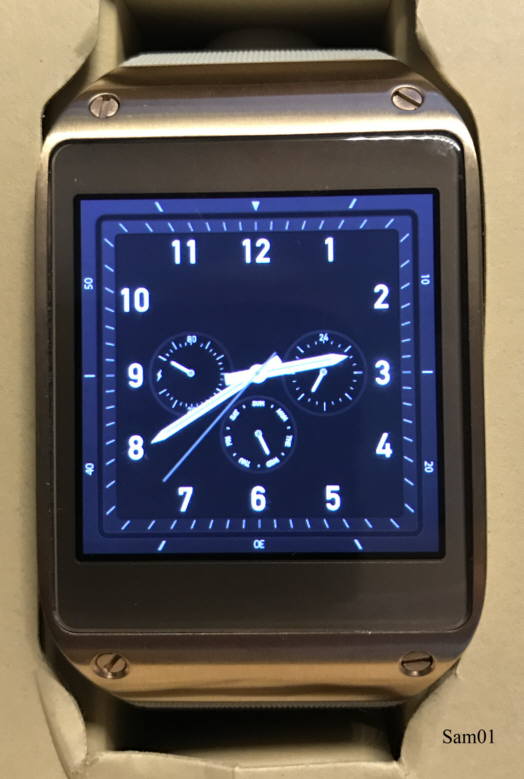 Die Erste Smart Watch von Samsung zur Bluetooth Koppelung mit bestimmten Samsung Handys. Die Uhr bietet eingeschränkte Handy Funktionen an. Der Accu wird in der Ladeschale über die USB Schnittstelle geladen. Das Gehäuse ist in Rosegold Metall und sehr wertig verarbeitet. Die Bedienung erfolgt über den Touch screen der Uhr.
