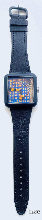 Dies ist die zweite Uhr der Genesis Kollektion von Friedensreich Hundertwasser. Beschriftet vorn: ” ”, hinten: ”Licht von Finsternis. We live in a Paradise- Do not destroy it. Achtung: Zeit gefährdet Dein Leben. Genesis Edition 1887 / 4992, 1995 Hundertwasser, ETA Swiss Movement. Water Resistant. Laks Watch ”, innen: “One 1 Jewel, ETA 902.105, Swiss Parts, Thailand Movement ”, Schwarzes Lederband mit Hundertwasser Schriftzug. Limited Edition 4992 Stück, dies ist Nummer 1887. Das Licht entsteigt einem Fenster der Stadt. Die Fenster der Großstadt sind wie ein Sternenhimmel. In der Stadt sieht man die Sterne nicht, denn die vielen künstlichen Sterne überleuchten die Sonnensterne. Die Nacht zum Tag machen zu wollen ist nur eines der vielen Zeichen des Hochmutes des Menschen, gegen die Schöpfung zu agieren.