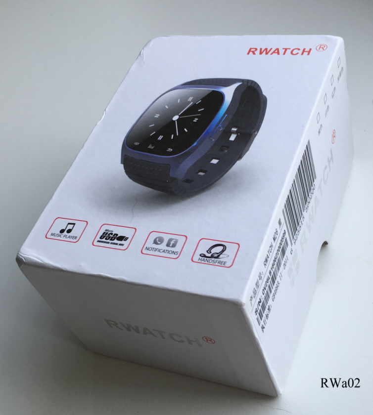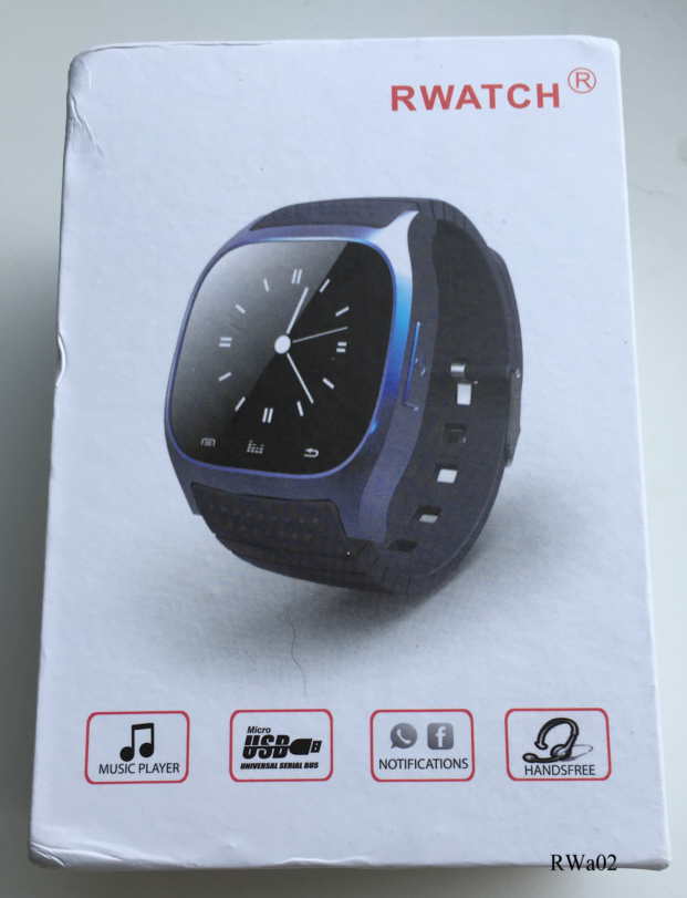 Die RWatch M26 kann über Bluetooth mit Android Telefonen und dem iPhone gekoppelt werden. Die Bedienung erfolgt über Touch Screen. Das Laden erfolgt über einen USB Stecker an der Seite der Uhr. Die Zifferblätter der Uhr können über das Telefon geändert werden, 2x Digital und 2x Analog. Schwarzes Kautschukarmband.
