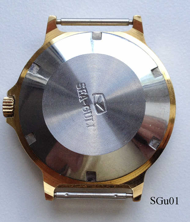 Eine Sea Gull Automatic Uhr aus dem größten Chinesischen Uhrenwerk Tianjin, Datum bei der 3, 23 Steine. Beschriftet vorn: “Sea Gull, Made in China”, hinten: “Sea Gull ” und Logo, innen: “ST6, 23 Zuan”. Goldfarbenes Gehäuse aus Base Metal, verschraubter Edelstahl Boden, Kaliber ST6.