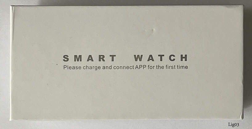 Eine Lige Damen Smartwatch, Modell Fitness Tracker. Das Gehäuse ist aus Metall. Beschriftung vorn: ” ”, hinten: ”Fitness Tracker, FC, RoHS, Made in China”. Verbindet per BlueTooth mit Android und IOS. Funktionen siehe mittleres Bild. Rosè Kunststoffarmband.
