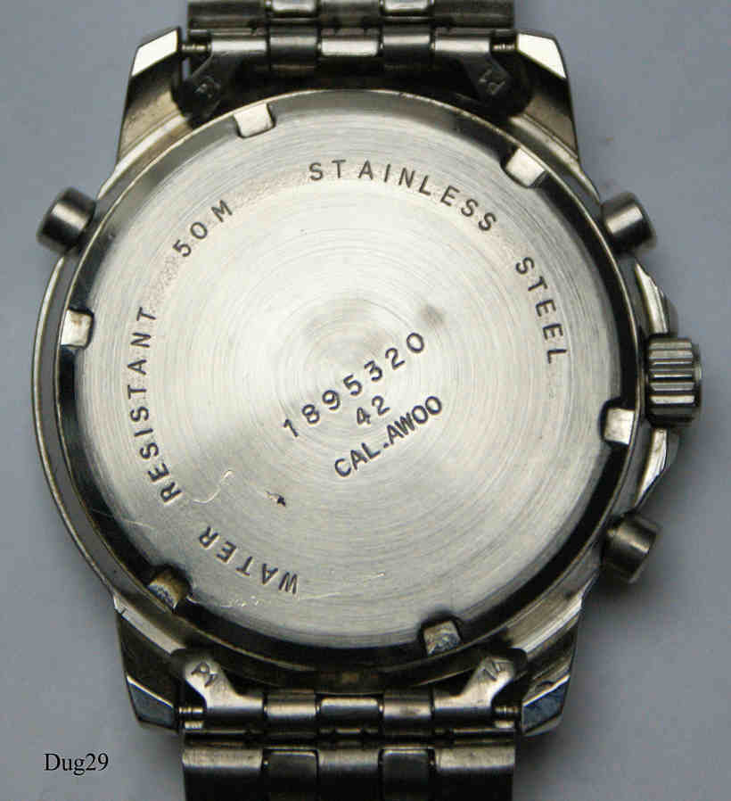 Eine Dugena Herren Quartzuhr mit Sound und Vibrations Alarm, Stainless Steel Gehäuse. Beschriftung vorn: “Dugena, Sound, Vibration, WR100”, hinten: ”Water Resistant, 50M, Stainless Steel, 1895320, 42, Cal. AW00”, innen: ”AW00, unadjusted”. Edelstahl Armband mit Dugena Faltschließe. Auf dem kleinen Zifferblatt wird die Alarmzeit eingestellt. Kaliber Miyota AW00